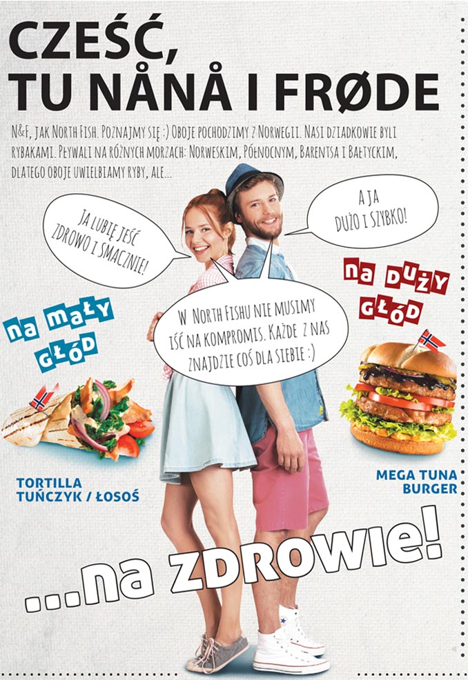 The campaign was based on the creation of two heroes, Nana and Frode, who love fish and seafood. They also love Norway, and thus North Fish.